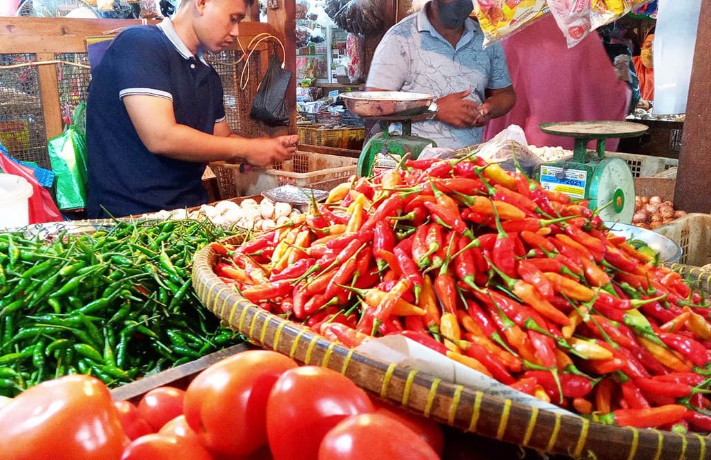 Pemilik kios bahan pokok, Ajuma, mengungkapkan bahwa cabai merah dan cabai rawit kini dijual seragam di harga Rp90.000 per kilogram. Padahal, pada pekan sebelumnya cabai merah masih berada di angka Rp80.000 dan cabai rawit Rp60.000 per kilogram.